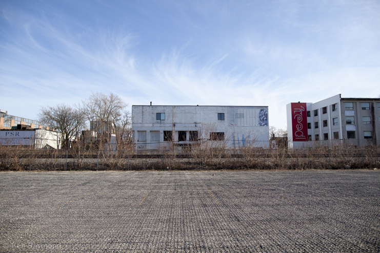 < White Industrial Building by the Tracks