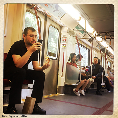 Guy eating a donut on the subway
